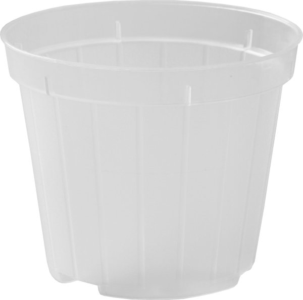 Průhledný tenkostěnný kontejner vhodný především pro pěstování orchidejí. Díky mléčné průhledné barvě se ke kořenům rostliny dostává dostatek slunečního světla, což jejímu pěstování prospívá.