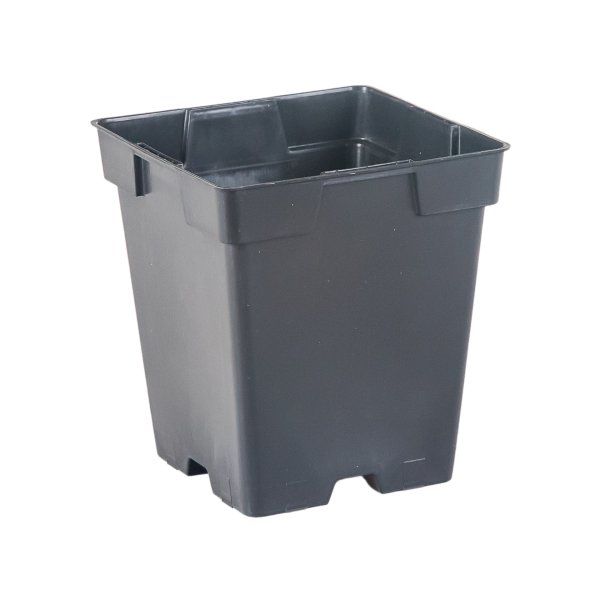 Hranatý plastový černý kontejner pevné kvality je určený pro pěstování rostlin. Pevná kvalita znamená, že drží tvar a je nepromáčknutelný. Používá se na výsadby. Svou cenou, mnoha velikostmi a pevnou kvalitou se řadí mezi běžně dostupné plasty.