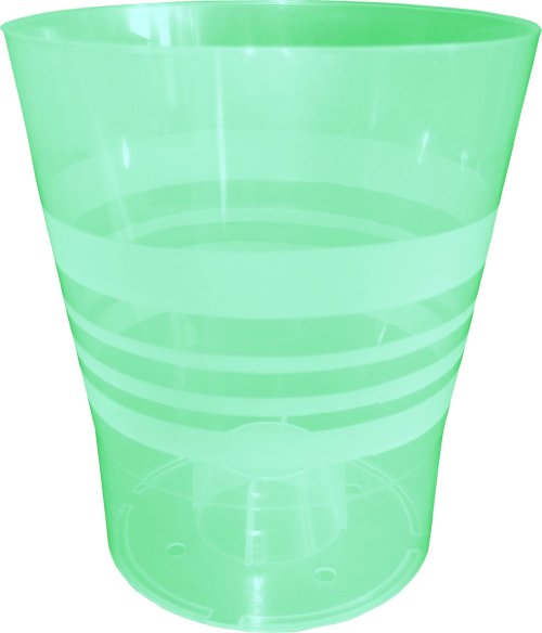 Plastový květináč pro orchideje. Zvýšené dno zajišťuje, aby rostlina netrpěla přelitím a přebytkem vody, což je nejčastější příčinou jejich uvadnutí. Lze použít také jako obal, odtokové otvory jsou pouze naznačeny.