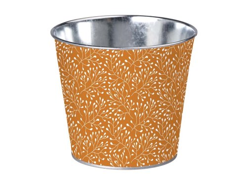 Květináč plechový 133x115mm klasik Autumn Herbarium, oranžová, bílá,