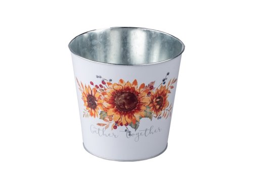 Květináč plechový 185x175mm klasik slunečnice, žlutá, bílá, hnědá