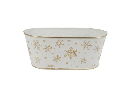 Květináč plechový 255x140x140mm oválný vločka, bílá, zlatá