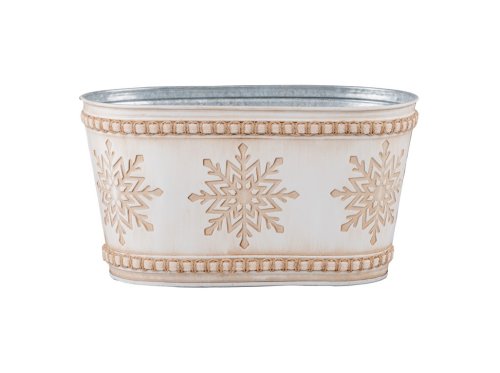 Květináč Vločka je oválný plechový květináč v elegantním bílém a krémovém provedení, vhodný pro květiny, bylinky nebo zimní dekorace. Stylový design dodává prostoru sváteční atmosféru a zároveň je praktický pro každodenní použití.
