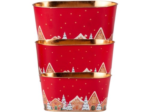 Tato sada tří oválných plechových květináčů Vesnička je ideální pro výsadbu květin, bylinek nebo dekorativní aranžmá. Barevný motiv dodává prostoru hravý a stylový vzhled. Květináče lze používat samostatně nebo jako kompaktní set pro dekorativní prezentaci.