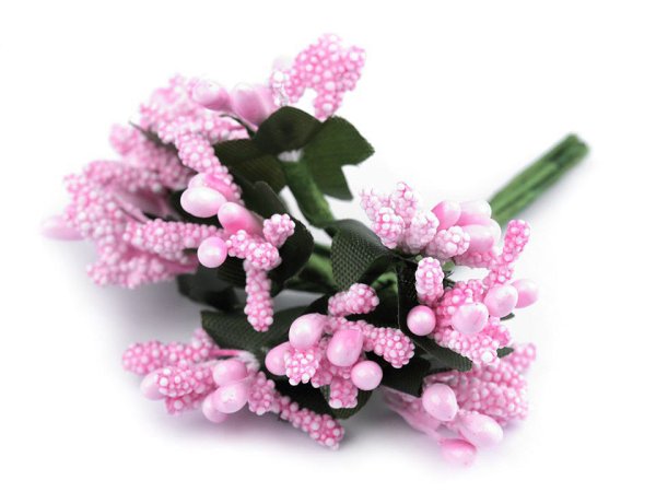 Květinové pestíky na drátku / vývazek - růžová sv. (12 ks)