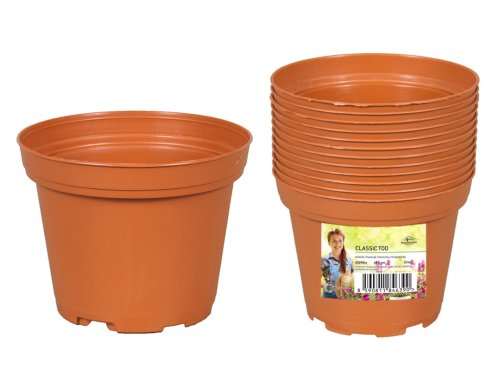 Lehčený plastový květník pro zdravé rostliny a jejich rychlý růst. Barva: terakota. Průměr: 9,5 cm. V balení je 12 kusů.