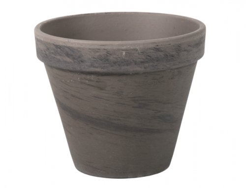 Mrazuvzdorný klasický květináč v jedinečném zemitě šedém zbarvení s antracitovým mramorováním. Květník je melírovaný a každý kus originálně zabarvený v závislosti na složení jílu. Vhodný pro umístění do interiéru i exteriéru, neošetřený, s otvorem. Vnitřní průměr: 14 cm, vnější průměr: 15 cm, výška: 14 cm. Barva: šedá s tmavě šedým melírem. Vhodnou podmiskou je EVITA - NG 002205čm.