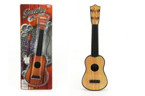 Koordinace nových pohybů při hře na kytaru bude pro děti novou zkušeností. Provedení kytary je imitace světlého nebo tmavého dřeva. Vhodné od 3 let.