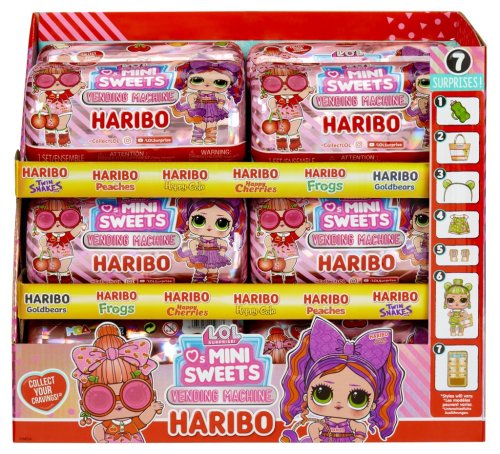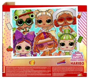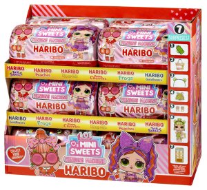 L.O.L. Surprise! se spojilo s ikonickým výrobcem sladkostí a společně s Haribo vám přináší panenky, jejichž doplňky jsou inspirované Haribo sladkostmi. Jedna z 8 nových postaviček je ukrytá ve válci, ve kterém najdeš i další překvapení.Obsah balení:• 1 panenka• 1 – 3 módní doplňky• 1 pár bot• 1 lahvička• 2 – 4 doplňky Velikost L.O.L. panenky: cca 8 cm.