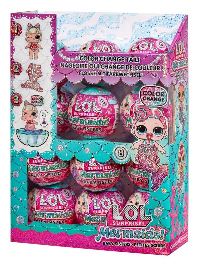 Udělej ze své L.O.L. sestřičky mořskou pannu! V balení najdeš ocasní ploutev, která mění barvu v ledové vodě. Ploutev stačí sestřičce nasadit. Panenku s ploutví můžeš vystavit na obale. Obal připomíná otevřenou mušli.