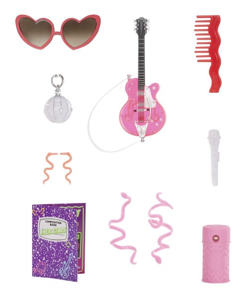 Obsah balení:? • 1 panenka s pohyblivými klouby, česatelnými vlásky a osobitým pop-star stylem • kytara, růžový mikrofon, módní kabelka, brýle ve tvaru srdce, roztomilé náušnice a mnoho dalšího