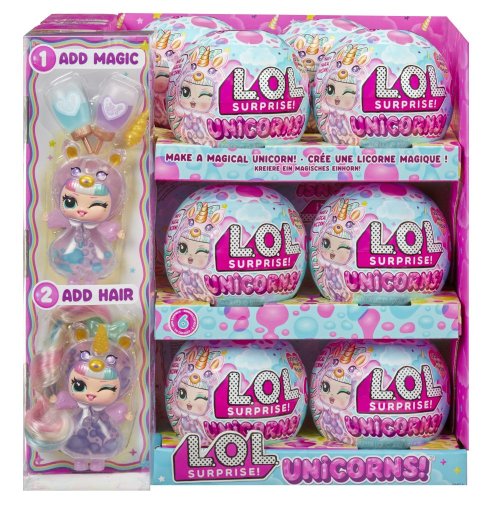 L.O.L. Surprise! panenka s průhledným tělem a hlavou ve tvaru jednorožce. V balení najdeš 2 lahvičky s tekutinou k naplnění těla. Po naplnění budou v panence klouzat barevné bubliny a panenka bude vyvolávat efekt lávové lampy.