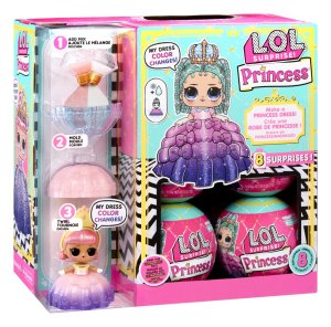 Připrav se na kreativní zábavu s roztomilými L.O.L. Surprise! Princeznami. Vytvoř princeznovské šaty pro svou panenku. Stačí smíchat dva barevné gely, nalít je do formy na šaty a nechat ztuhnout. Jakmile jsou panenky oblečené do svých nových šatů, ponoř je do ledové vody a sleduj, jak se jejich barva překvapivě promění! Šaty budou sedět jakékoli L.O.L. panence. V balení najdeš spoustu překvapení jako stylové outfity, doplňky a další.