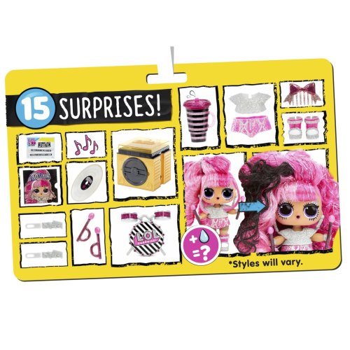 Rozbal úplně novou L.O.L. panenku s barevnými vlásky. Když je učešeš, změní barvu nebo styl. Každá panenka poslouchá jinou hudbu a ty si ji můžeš také poslechnout. Balení obsahuje mini přehrávač.