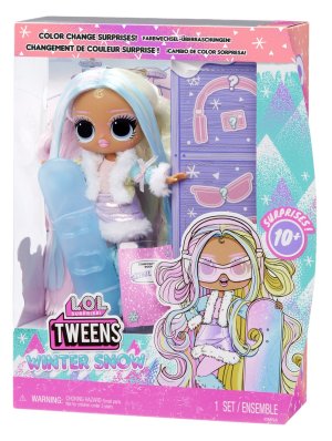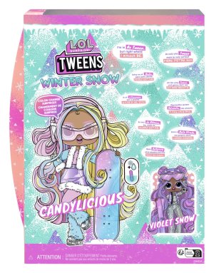 Užij si zimní dovolenou stylově se zcela novými Zimními Tweens panenkami. Jsou to velké sestry menších L.O.L. panenek BonBon a Snow Jamz! Rozbal několik překvapení se zimní tematikou. První Tweens panenka má rozkošného kulicha s ušima, zimní bundu s mašlemi, stylové návleky na nohy, trendy snowboard, lyžařské brýle, sluchátka s otočnými náušníky, příslušenství k fotoaparátu, kabelku a další! Druhá má roztomilé klapky na uši, módní svetřík s rukávy, trendy fialovou vestu, stylové duhové zimní kalhoty, elegantní lyžařské brýle, roztomilé růžové lyže a hůlky, doplněk k telefonu, fialovou kabelku a další!