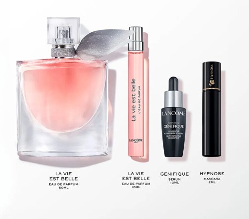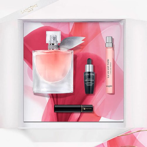 La Vie Est Belle je květinově-ovocná vůně pro ženy od značky Lancôme, která byla vytvořena v roce 2012. Koncept této vůně je zaměřen na myšlenku jednoduché a přirozené krásy, vůně je určena pro všechny ženy, které dokáží najít potěšení i v obyčejných věcech. Sada obsahuje parfémovanou vodu 50 ml a miniaturu 10 ml, která se vejde do každé kabelky a bude vás doprovázet na cestách. Součástí sady je také mini řasenka Hypnose Mascara, která dodá vašim řasám exkluzivní délku a objem, a renovované ikonické sérum Advanced Génifique, které omlazuje a rozjasňuje pleť. Pouhá 1 kapka obsahuje miliony účinných látek, které vyživují a hydratují vaši pokožku. Sérum redukuje projevy stárnutí, navrací pleti živost a jas. Chrání pleť před vnějšími nepříznivými vlivy, které každodenně pleť oslabují a způsobují tak vznik vrásek. Obsažená probiotika a prebiotika pomáhají vyhlazovat vrásky, zpevňují kontury a posilují přirozenou bariéru pleti.Aktivní látky: