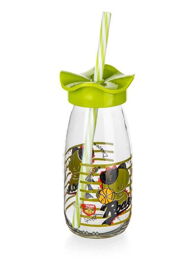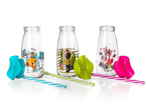 Láhev 250 ml, s víčkem a brčkem, sklo / PH mix dekorů.