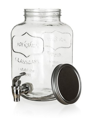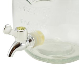 Skleněný zásobník na nápoje BRISA, o objemu 4 l, slouží k servírování osvěžujících nápojů na oslavách a letních párty. Zásobník je vyroben z kvalitního čirého skla a je opatřen praktickým plastovým kohoutkem pro dávkování nápojů. Zásobník je určený k podávání pouze chladných a svěžích letních nápojů typu domácí limonáda, ovocný džus, ledový čaj a podobně. Široké hrdlo umožňuje do nádoby pohodlně vkládat led nebo kousky ovoce.