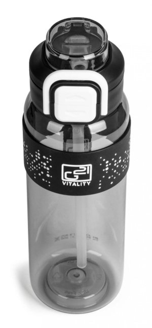Láhev na pití s dvojitým víkem, zdravotně nezávadný BPA free materiál, ultra bezpečná pojistka proti samovolnému otevření, dvojí způsob pití – brčkem i z hrdla.