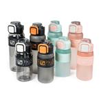 Láhev na pití s dvojitým víkem, zdravotně nezávadný BPA free materiál, ultra bezpečná pojistka proti samovolnému otevření, dvojí způsob pití – brčkem i z hrdla.