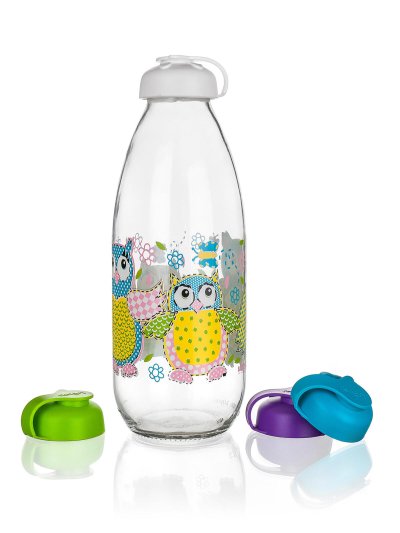 Láhev na mléko OWLS l v novém atraktivním dekoru sovy.