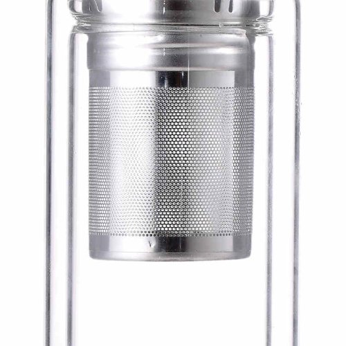 • přenosná lahev na vodu, limonádu i čaj z borosilikátového skla- toto žáruvzdorné sklo dobře snáší studené i teplé nápoje a jejich teplotu udržuje mnohem lépe než plast- lahev má navíc dvojitou stěnu a teplotu nápoje tak dokáže udržet i 4 až 8 hodin- termolahve z borosilikátového skla jsou samozřejmě o dost zdravější než plastové- spolehlivé uzavření díky šroubovacímu víčku z bambusového dřeva- víčko má silikonové těsnění, láhev tak neprotéká v žádné poloze- díky velkému hrdlu jednoduše přidáte ovoce, led i bylinky do Vašeho oblíbeného nápoje- nerezové odnímatelné sítko Vám luhování surovin významně usnadní- snadné čištění, vhodné do myčky nádobí- objem: 0,35 litru