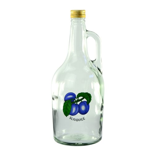 Skleněná láhev Frucognac ve tvaru demižonku s dekorem švestka slivovice je ideální na destiláty, včetně plechového víčka. Objem 1750 ml, výška včetně plechového víčka je 31.5 cm. Český výrobce. EAN 8590504031133