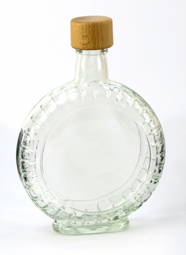 Skleněná láhev Peggy je ideální na destiláty. Objem 350 ml, výška včetně dřevěného víčka je 18 cm. EAN 8509050403103
