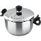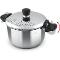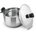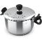 Hrnec vyroben z prvotřídní nerezavějící oceli včetně poklice, opatřen silným sendvičovým dnem.