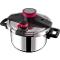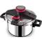 Tlakový hrnec 5l .Tlakový hrnec je vyroben z prvotřídní nerezavějící oceli 18/10 a velmi odolného plastu. Snadná manipulace otevření víka jednou rukou. Využitím regulace tlaku lze připravit velmi šetrně, rychle a chutně jakýkoli pokrm. Tlakový hrnec je vybaven indikátorem tlaku, dvojím bezpečnostním ventilem a bezpečnostním okénkem, pojistkou proti přetlaku a masivními držadly pro snadnou manipulaci, která nepálí. Designový tlakový hrnec se sendvičových dnem je určen pro všechny typy sporáků včetně indukčního.