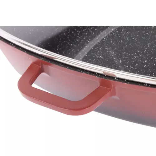 Nádobí je opatřeno kvalitním nepřilnavým vnitřním povrchem, který efektivně zabraňuje připalování pokrmů a umožňuje zdravější způsob přípravy jídel bez nadměrného množství tuků. Díky silnému dnu a elegantním úchytům získáte maximální bezpečnost, funkčnost a pohodlí při vaření.