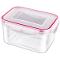 Praktická a spolehlivá dóza pro skladování a přenášení potravin. Vyrobena z odolného plastu s kvalitním silikonovým těsněním víčka – vzduchotěsné a vodotěsné. Potraviny zůstávají déle čerstvé, udržují si své aroma, při manipulaci nevytékají. Vhodné do ledničky, mrazničky, mikrovlnné trouby a do myčky. -20°C až 110°C.