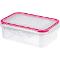 Praktická a spolehlivá dóza pro skladování a přenášení potravin. Vyrobena z odolného plastu s kvalitním silikonovým těsněním víčka – vzduchotěsné a vodotěsné. Potraviny zůstávají déle čerstvé, udržují si své aroma, při manipulaci nevytékají. Vhodné do ledničky, mrazničky, mikrovlnné trouby a do myčky. -20°C až 110°C.