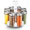 Sada kořenek na otočném plastovém stojanu v moderním designu Přenosné madlo Kořenky vyrobeny z odolného skla vhodné i do myčky na nádobí bez víčka Objem kořenky 85ml Bez koření