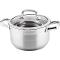 Hrnec se skleněnou poklicí Průměr 22 cm Objem: 4,6 l Vysoce kvalitní nerezové nádobí Vyrobeno z prvotřídní nerezavějící oceli Sklěněná poklice se širokou nerezovou obrubou Součástí poklice otvor pro páru Stupnice litráže Madla ergonomická Rychlé a rovnoměrné vaření na základě akumulačního přenesení tepla Masivní sendvičové dno Zdravé a rychlé vaření Použití na typy sporáků: plynový, elektrický, halogenový, sklokeramický a indukční Lze mýt v myčce na nádobí Snadná manipulace, údržba a čištění 3 roky záruka Rozměry: 22 x 12,5 cm