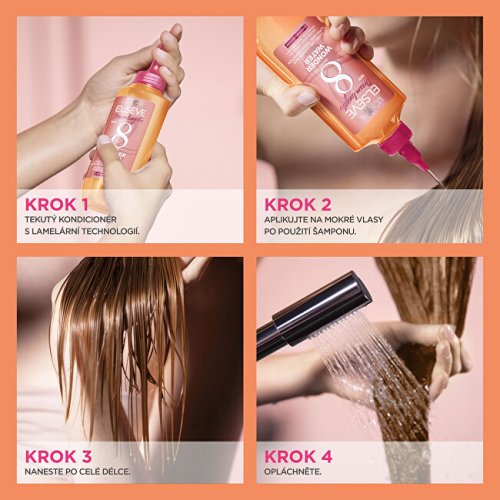 Kondicionér lehký jako voda poskytuje vlasům okamžitou péči. Usnadňuje rozčesávání a zajišťuje lesklé a hladké vlasy během 8 vteřin. Díky inovativní lamelární technologii obnovuje povrch vlasů a je vhodný zejména pro dlouhé a poškozené vlasy. Má tekutou texturu, snadno se nanáší a zanechává vlasy hydratované, hebké a lesklé.