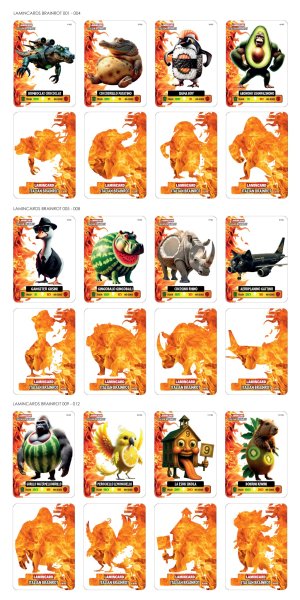 Lamincard Italian Brainrot je sběratelský set laminovaných karetních lamincards inspirovaných italskou pop-kulturou a humorem. Každý balíček obsahuje 5 náhodně vybraných karet. Prémiové lisované lamincards vyrobené z lesklého, odolného materiálu.5 karet – některé jsou běžné, některé speciální a dokonce i holografické nebo velmi vzácné.