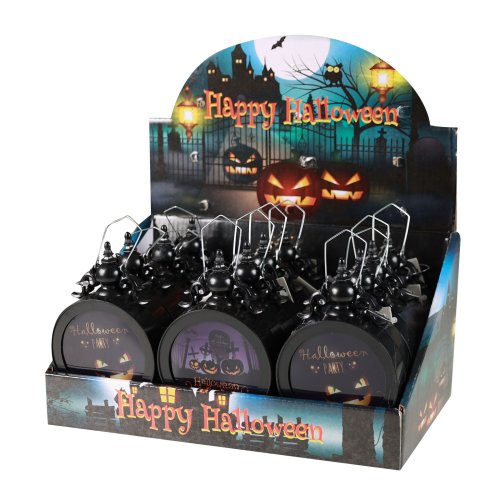 Halloweenské svítidlo na tu pravou Halloween párty! Plastová lampička je funkční na 3 baterie typu LR1130 (baterie jsou součástí balení). Stačí jen přepnout přepínač ve spodní části. Lampička po zapnutí bliká různými barvami, které se samy přepínají. Velikost lampičky je cca 13 cm.