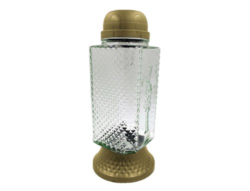 Skleněná hřbitovní lampa ve tvaru kvádru s jemně zdobenými bočními stranami s motivy kosočtverců, připomínající diamanty. Přední část je dozdobena obrázkem kříže. Sklo je čiré, doplněné o plastový podstavec a víčko. Ve víčku je zabudován solární panel se soumrakovým senzorem, který zajistí automatické rozsvícení po setmění. Díky solárnímu napájení odpadá nutnost výměny náplní, což zajišťuje pohodlné a dlouhodobé použití při dekoraci pietních míst. Rozměry: průměr 11 cm, výška 26 cm. Barva: zlatá.