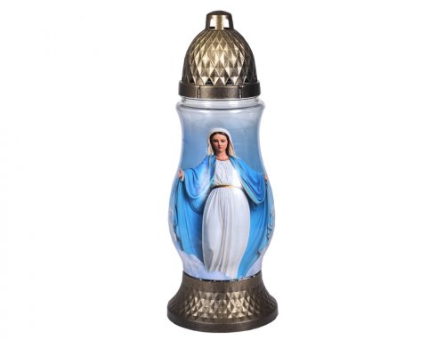 Lampa hřbitovní PANNA MARIE skleněná 80g d10x28cm