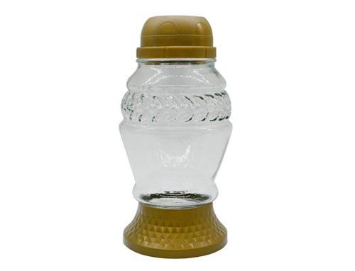 Skleněná hřbitovní lampa s plastovým víčkem.