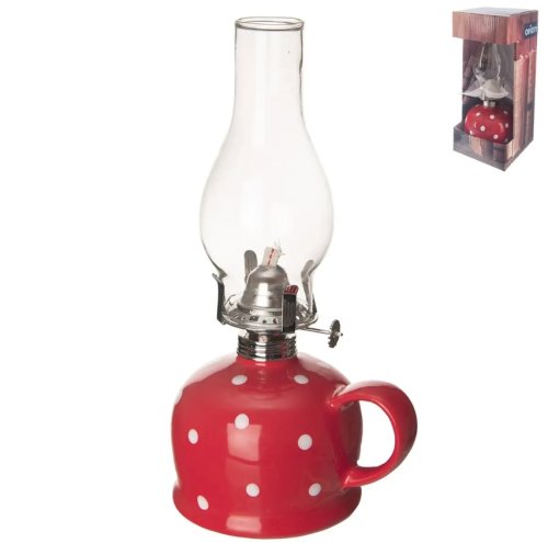 Petrolejová lampa poslouží jako romantické svítidlo. Skvělý doplněk interiéru, ale také vás může zachránit při výpadku elektrického proudu. Plní se buď petrolejem nebo lampovým olejem. Návod k obsluze je na obale. Materiál sklo, keramika, kov, bavlna. Průměr 11 cm, výška 28 cm. EAN 8596265126057