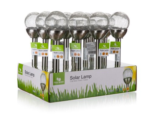 Solární nerezová lampa se skleněným dekoračním stínidlem ve tvaru koule s pavučinovým dekorem. Světelný zdroj - 1 bílá LED. Solární lampa je funkční a zároveň dekorační součást do každé zahrádky.