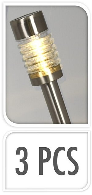 - třídílná sada venkovních LED solárních lamp vhodná k osvětlení celé zahrady, verandy, chodníčků, altánků, atd...- určená k zapíchnutí do země ale např. i do květináčů- kvalitní provedení z nerezové …