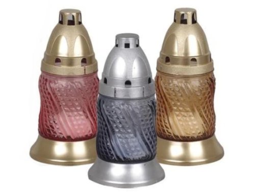 Hřbitovní lampička s diagonálním zdobením po celém obvodu. Je vyrobena ze skla, podstavec a víčko jsou z plastu. Design lamp zaujme kouřovými odstíny skla. V lampičce je vyměnitelná náplň. Hmotnost náplně: 30 g. Doba hoření: 8 hodin. Rozměry: výška 17 cm. Barva: mix barev.