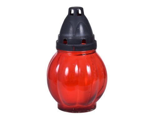 Hřbitovní lampa kulatého tvaru s podélnými rýhami. Je vyrobena ze skla, podstavec a víčko jsou z plastu. V lampičce je vyměnitelná náplň. Hmotnost náplně: 50 g. Doba hoření: 18 hodin. Rozměry: výška 18 cm. Barva: červená, zlatá.
