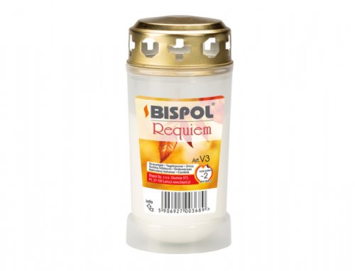 Plastová hřbitovní lampička z litého vosku s kovovým víčkem. Délka hoření: 2 dny. Barva: bílá. Hmotnost: 140 g, průměr: 6,5 cm, výška: 14 cm.