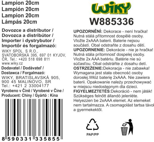 Lampion svítí po vložení 2x AAA baterií, které nejsou součástí balení. Lampion má tvar koule a je vyroben z papíru. Lampion je bez hůlky.
