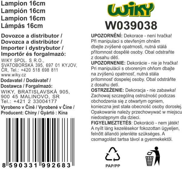Lampion válec 16 cm Zvířátka. 5 motivů.