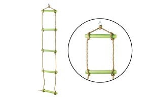 Lanový žebřík plastový. Šířka 30 cm. Délka 1,8 m. PE lana o průměru 10 mm. Nosnost 80 kg.